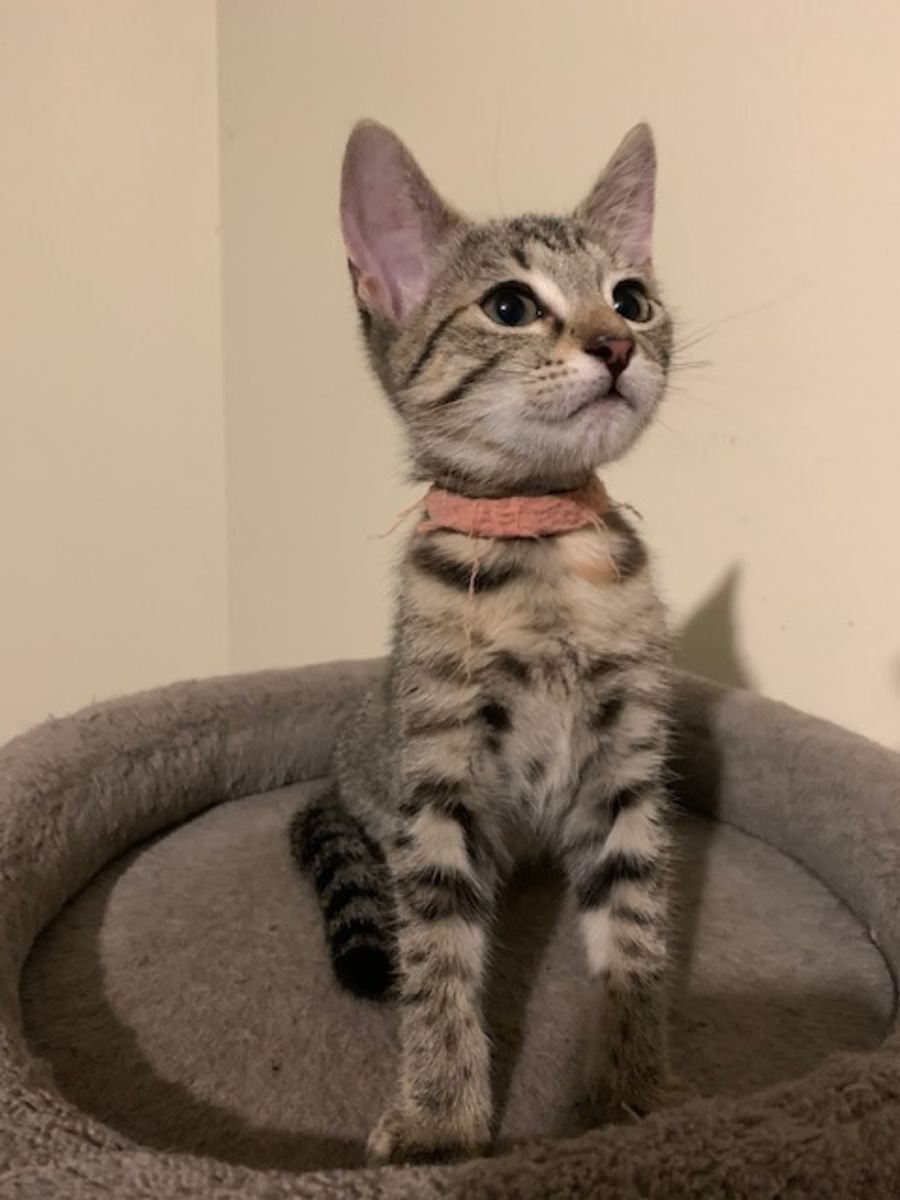 Mittens has a very sweet nature, she purrs the moment you pick her up, and loves to touch your face with her tiny paws!