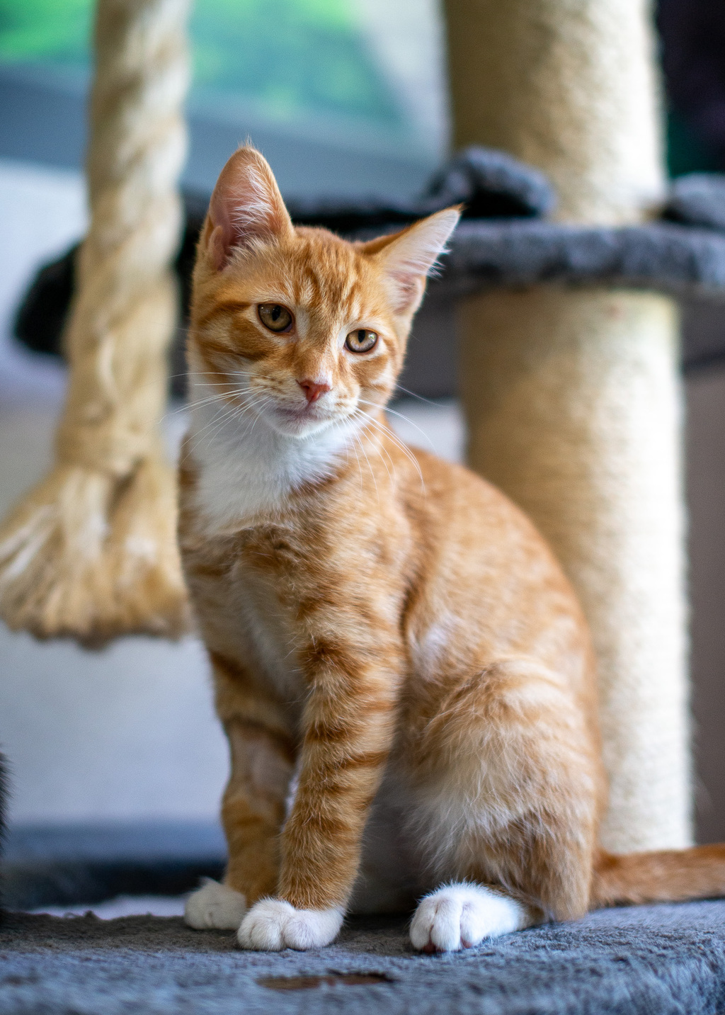 Jelly is a little wobbly on his feet but our onsite veterinarians have said he will still live a full and happy life as long as he is kept inside and safe. He jumps up and down off higher items like scratching posts without much trouble and despite his wobbles is fast on his feet!