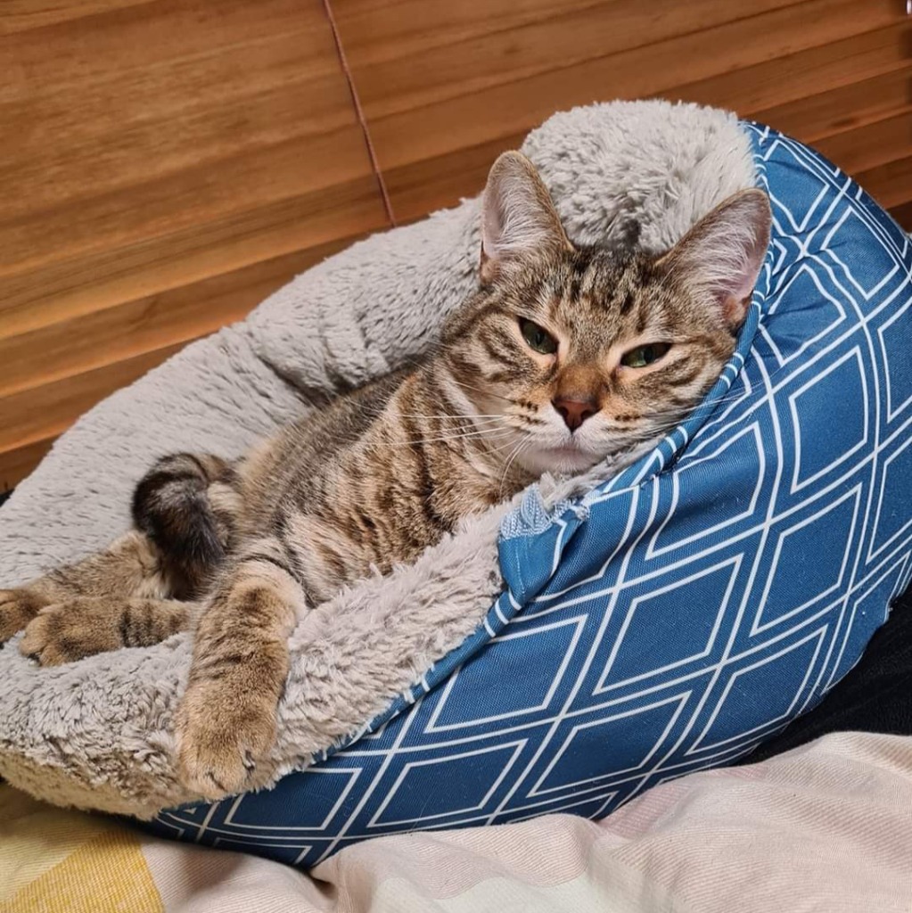 Ophelia is in a foster family with high school aged children so is used to the general comings and goings of a busy home. She goes from snuggly to playful pretty quickly and sometimes uses her claws so probably not best suited to very young children. Ophelia would suit family life or a quieter home.
