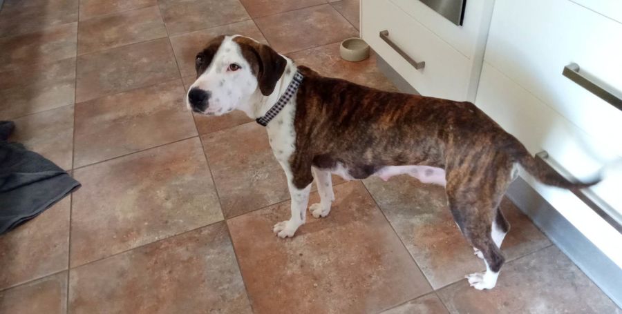 Looking for a loving home for Grace . She has been a great Mother to her 4 puppies , now she needs Mothering & training but most of all love & security. She loves food & will eat anything !! She loves company & always wants to be by your side. She is good on a lead, good with other dogs, chooks & horses . She loves to run & play but is unsure if her strength so probably not suited to a home with small children. She loves to indoors with you , sleeps inside at night & snores !!! she is well toilet trained.