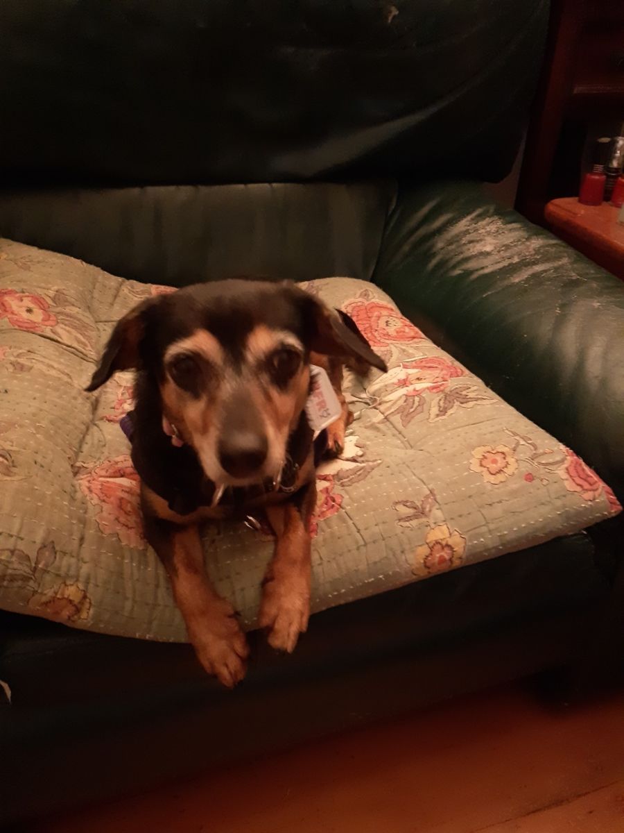 Cleo is super sweet and loves company. She mainly likes humans but will tolerate other dogs as long as they are well mannered. She sleeps inside and is mostly house trained. In her previous life she was an outside dog and this was very hard for her, being so small she was under a lot of stress , she was scared and cold or very hot. It wasn’t a good life. But she is happy now and looking for the right person or family. Ideally suited as an only dog in a quiet home.