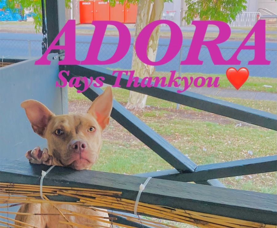 Adora was surrendered Christmas Day. She was underweight and scared. She had some mange and was hungry and obviously uncared for. Our trainer Helen from Building Better Dogs took her in and secured a lovely carer and made sure she was safe and warm and fed. She got a soft bed, some toys to destroy, some snacks, a pretty pink collar and lead.