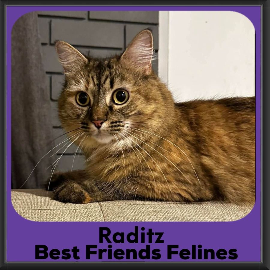 Snuggle scope: Affectionate on her own terms. Raditz enjoys closeness, pats, and shared space, but chooses when and how — think “next to you” rather than “on you,” with occasional bursts of floofy affection