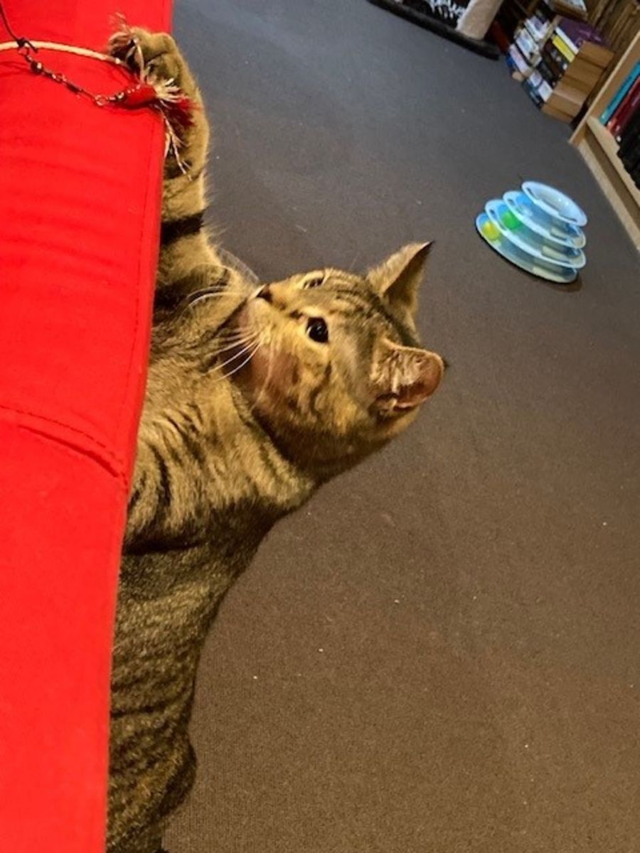 She is very low maintenance, and is happy to be left alone, but she would really love to be in a home with another (friendly) cat. In time, with the right feline partner, we are hopeful she will eventually be less of a scaredy-cat.