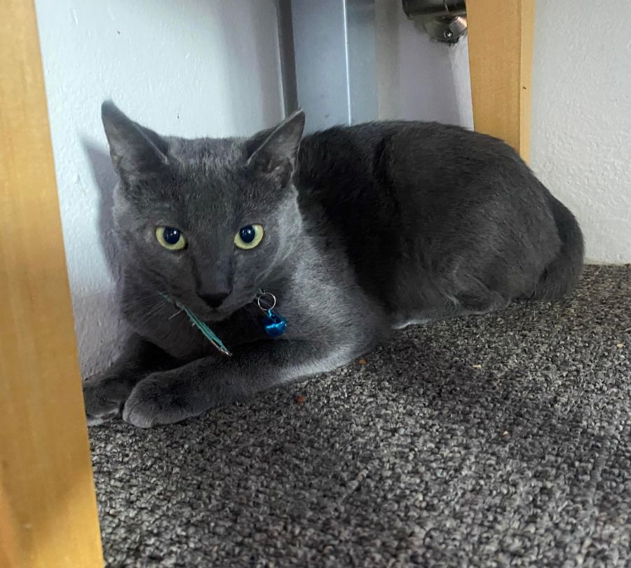 Merlin is very beautiful - a lovely silver blue. He will be shy at first but is very playful and gets on great with the foster carer's own cat.