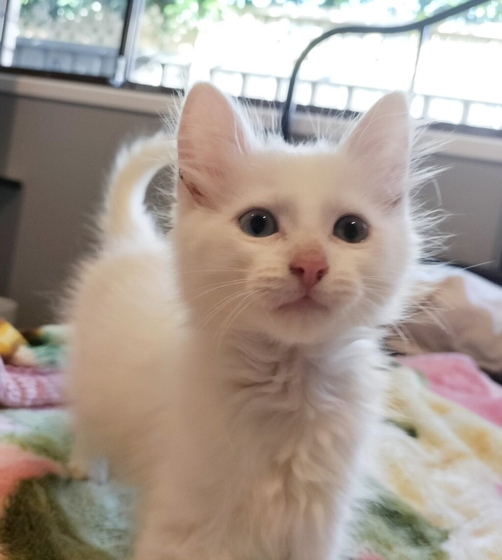 Frankie is a gorgeous white medium haired boy waiting for his forever home. Too pretty for a boy we say. If you would like to bring this little fluffy boy into your life, please enquire now. He will come desexed, vaccinated, microchipped, flea and worm treated. You just need to bring the love.....