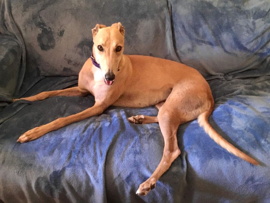 Alley or "National Sunset" her Racing Name, is a three-year-old blue fawn Greyhound who loves to hang out with you. She walks quite well on the lead, although she would love to run and chase the bunnies if we let her!