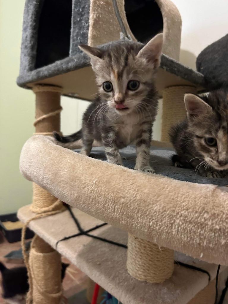 My fur-oster parents say I'm a vocal little kitten and can be very chatty. I'm also very affectionate and if you let me, I will climb up your pants and sit straight on your shoulders! I also love to snuggle in your lap and will purr loudly to tell you I'm in heaven. I love to cuddle, but when I'm not in your lap I love to play with my toys and my siblings.