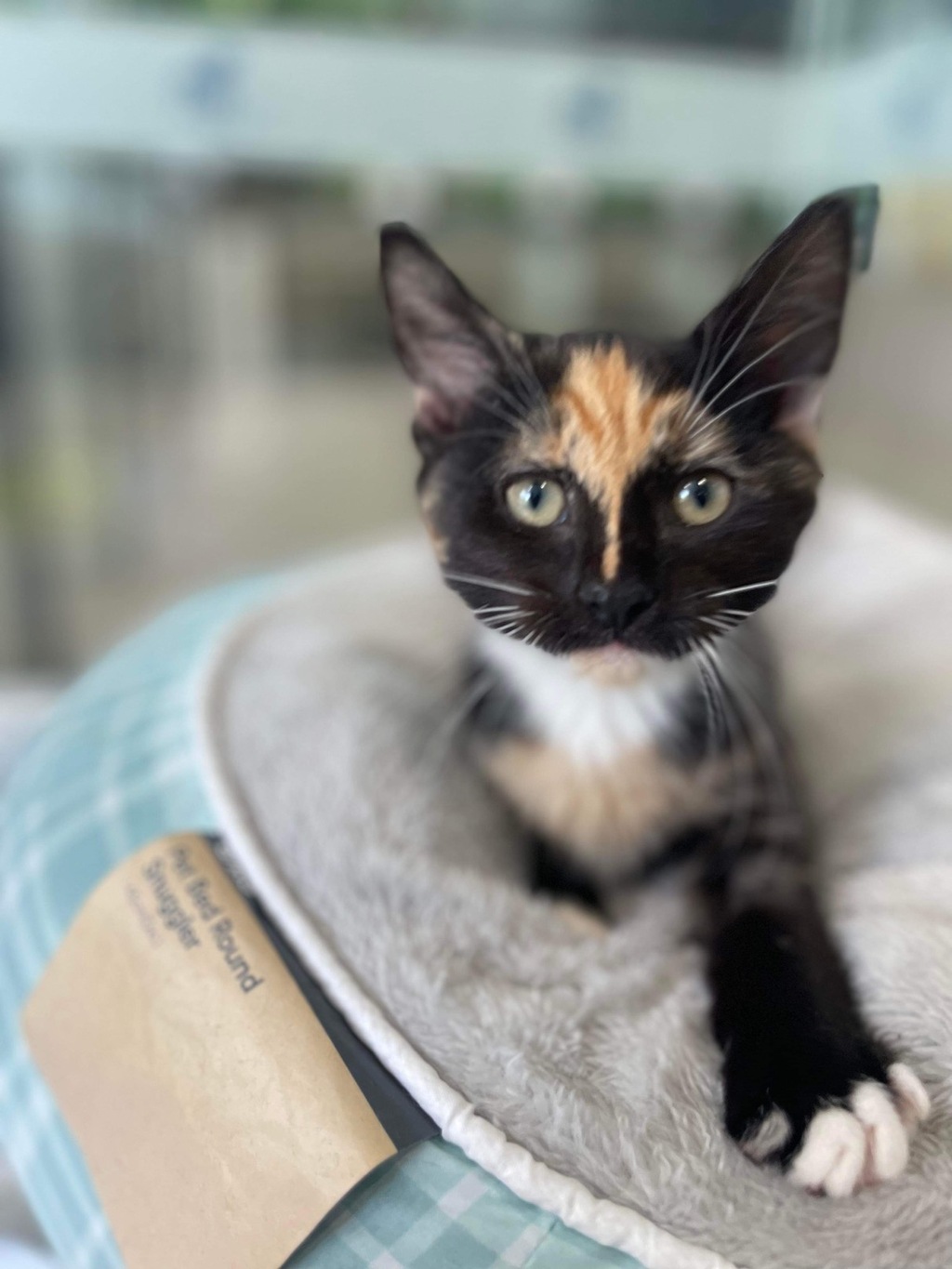 Morrone is our cheeky miss looking for a home that doesn't mind the naughty torti nature. Morrone does have beautiful moments of calming down for cuddle time or taking a nap in a plush bed but equally enjoys a good play session.