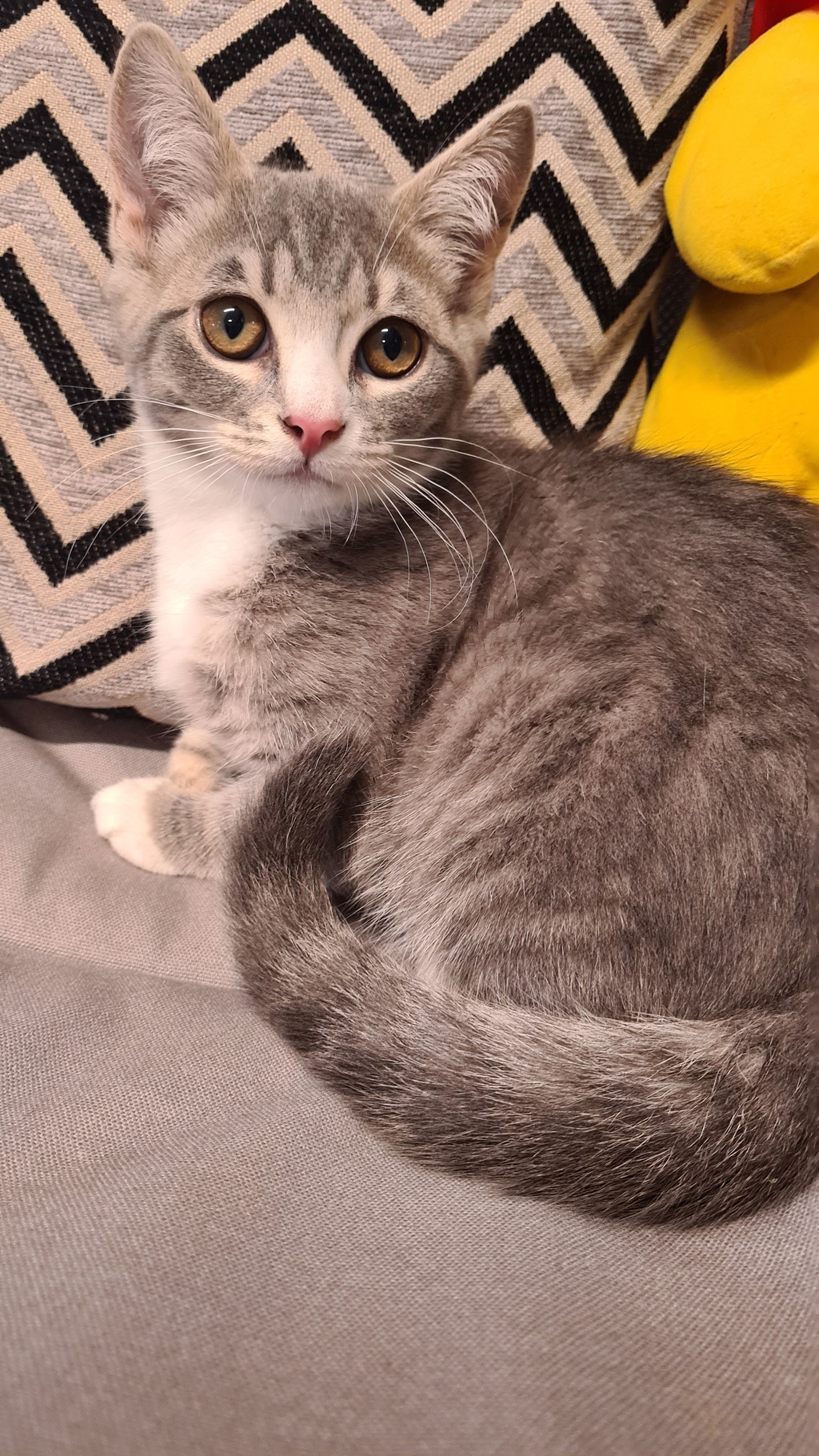 I'm a cute kitty looking for a human to love and a place to call home. I promise fun and entertainment, companionship and loyalty. I'm very talented and have mastered the art of sleeping, eating, chasing toys and being loveable.