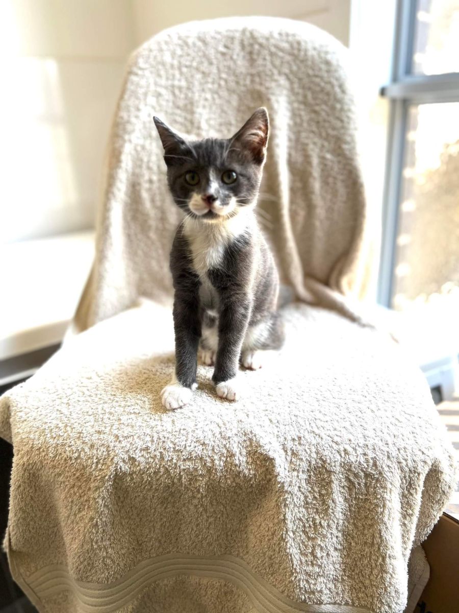 Mickey's estimated date of birth is 16 October 2022. He is in foster care with teenagers, another kitten, and adult cat and a small dog