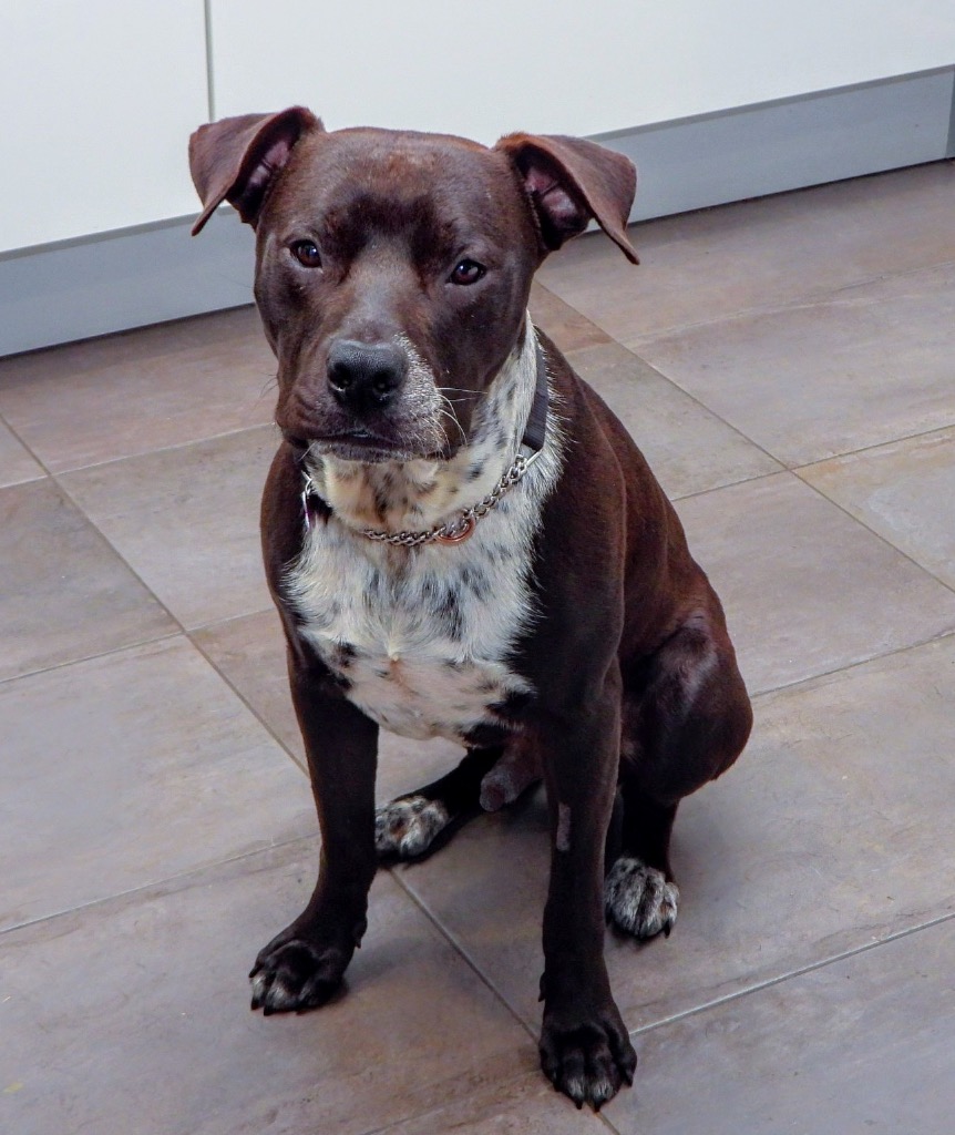 I'm dog and cat-friendly, but still a bit 'mouthy' so not suited to a family with kids under 10. I'm actually more than just 'dog-friendly'--I LOVE dogs of all shapes and sizes and am really good at 'reading' them. If they tell me off for being too friendly I take the message well and back off. I'm pretty good walking on a lead but I still pull when there are dogs I want to meet.