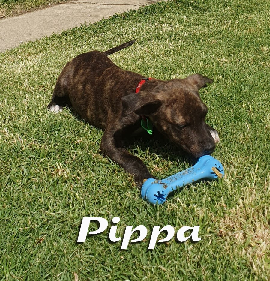 Pippa came to us with her litter mates, all needing some TLC and new homes. Pippa is a Staffy Kelpie crosses possibly mixed with another breed as well.