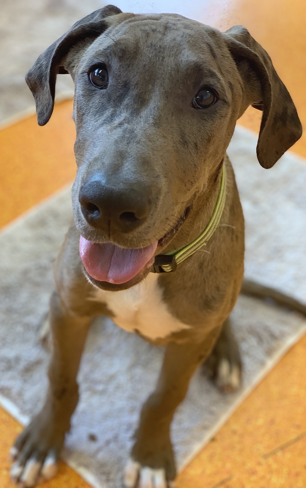 I'm a fun lanky legged Great Dane cross girl 5 months old with loads of energy