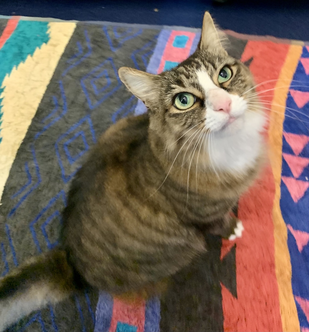 Paris was sadly surrendered due to no fault of her own. She has been lovely to have around. She is very affectionate, gentle and enjoys a good chat too. She will say hi to you as you enter her space, and welcome you with a bunt on your legs and a little soft wink, that sends a loving invite to pat her.
