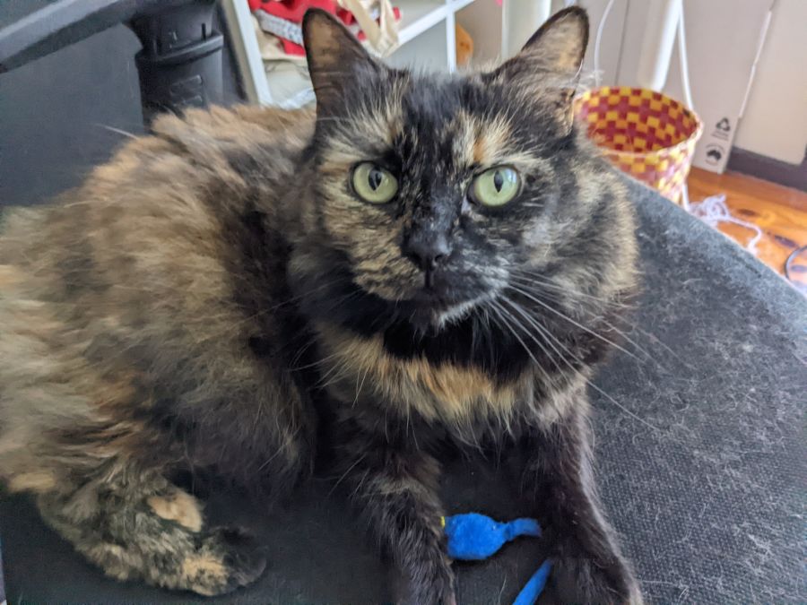 A typical day for Peanut involves snoozing after her morning meal, cuddling on the couch with her human besties in the afternoon, or keeping herself occupied with yarn, her favourite scratch tower or her catnip mouse toy.