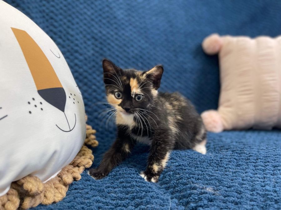 Kourtney is an 8 week old Female Tortoishell Domestic Short Hair Kitten.