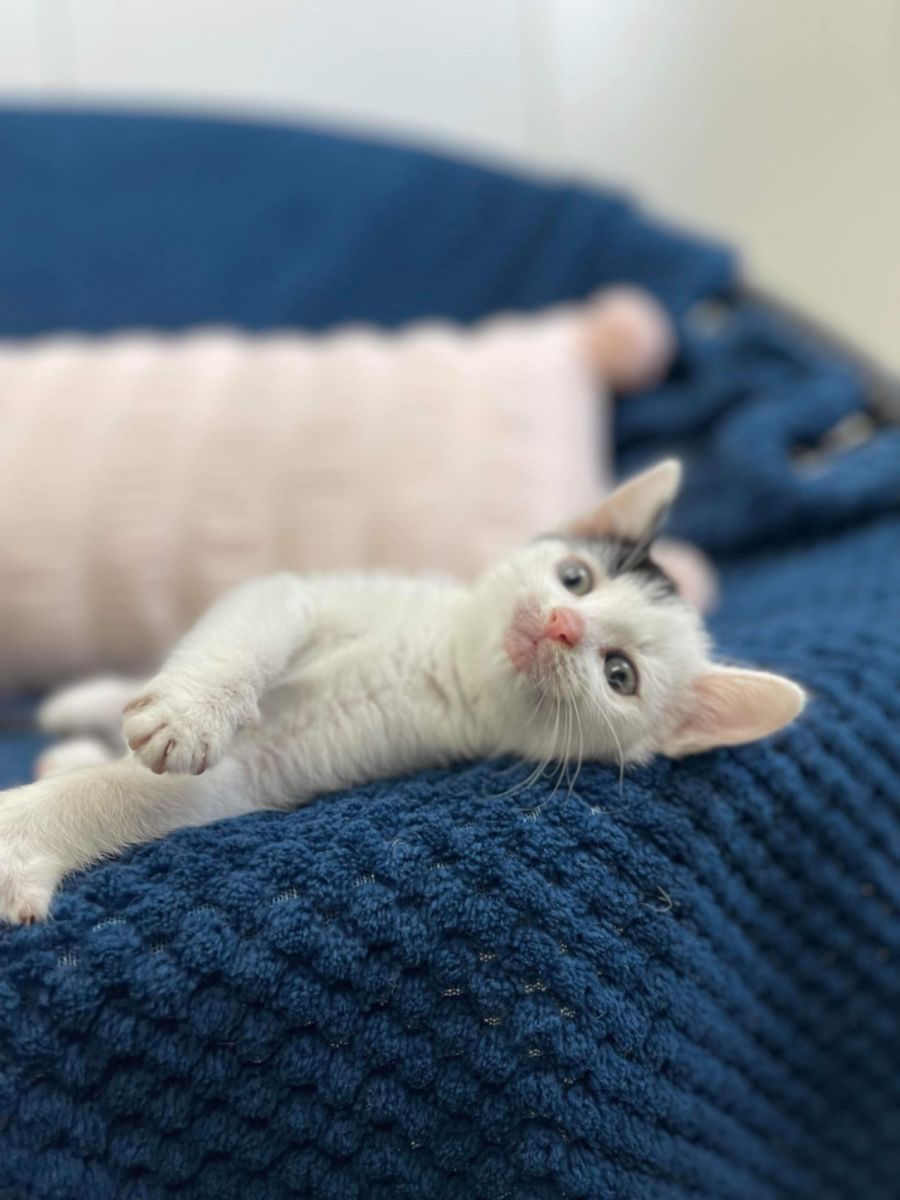 Kylie is an 8 week old Female White & Black Domestic Short Hair Kitten.