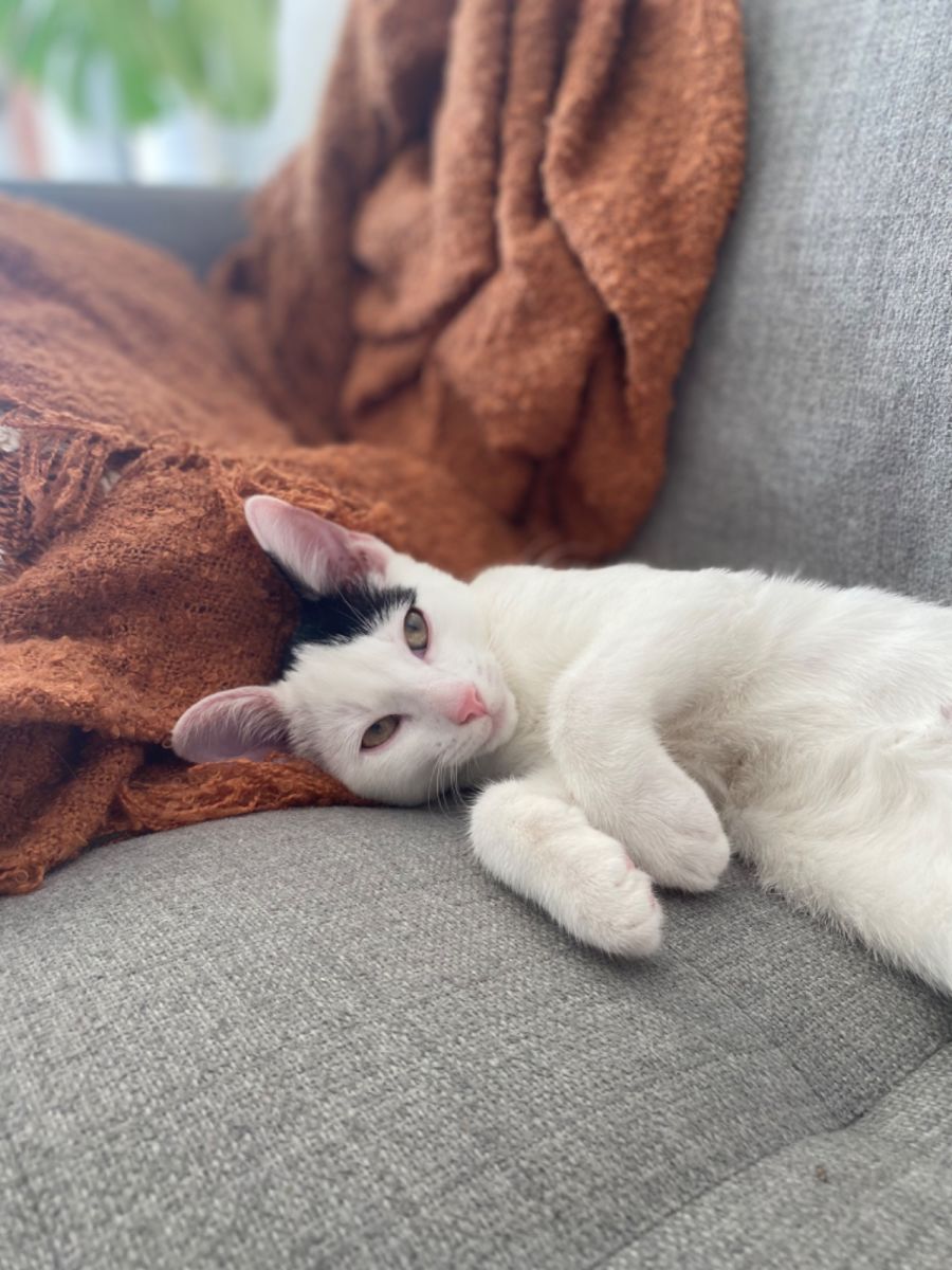 Kendall is a beautiful 19 week old female white & black Domestic Short Hair Kitten. She is a soft and affectionate kitten who loves to give cuddles and is always purring. Since being in rescue care, Kendall has come out of her shell and become quite the playful kitten. Her favorite toys are ping pong balls and her soft star toy which she likes to bring to you in her mouth and play fetch with!