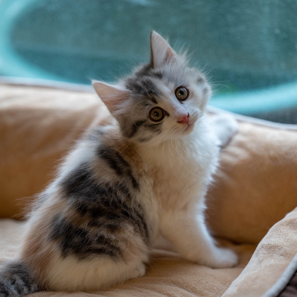 I am beyond cute. In fact I'm so cute that my foster mum never puts me down. It looks like I'm a living doll. My fur is soft and long and I think I'll stay a medium haired fluffball. I can be a bit bossy but I'm good with everyone - loud kids, barking dogs and demanding dads.