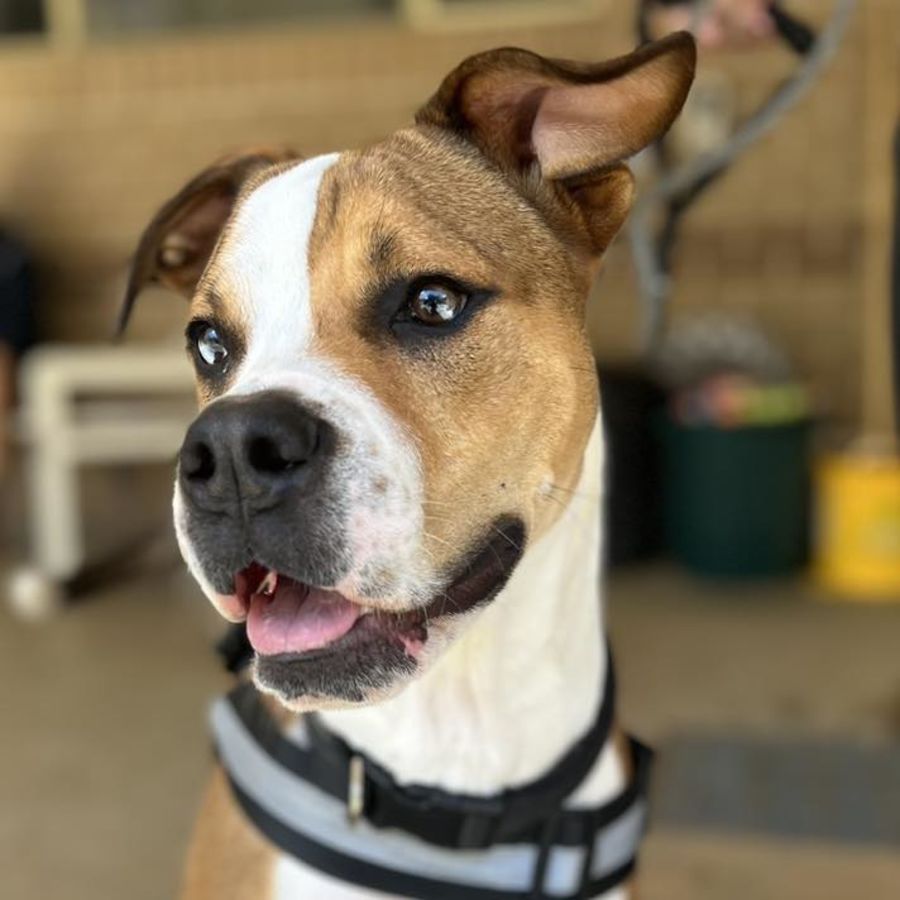 IMP 441 “SOLDIER” is a 10 month old Boxer cross who was reluctantly surrendered to the shelter. He is a loving and affectionate boy who adores people and being with them as much as possible. SOLDIER went to puppy pre school and has had further training. He walks well on a harness however he is quite strong. He likes going on long walks and has been around young children who he loved. He is dog social however if you have another dog a meet and greet would be required. His adoption fee is $408 which includes desexing, microchipping, vaccination, registration and worm and flea treatment. If you are interested in adopting this lovely boy please contact the shelter on 65833488. Thank you.
