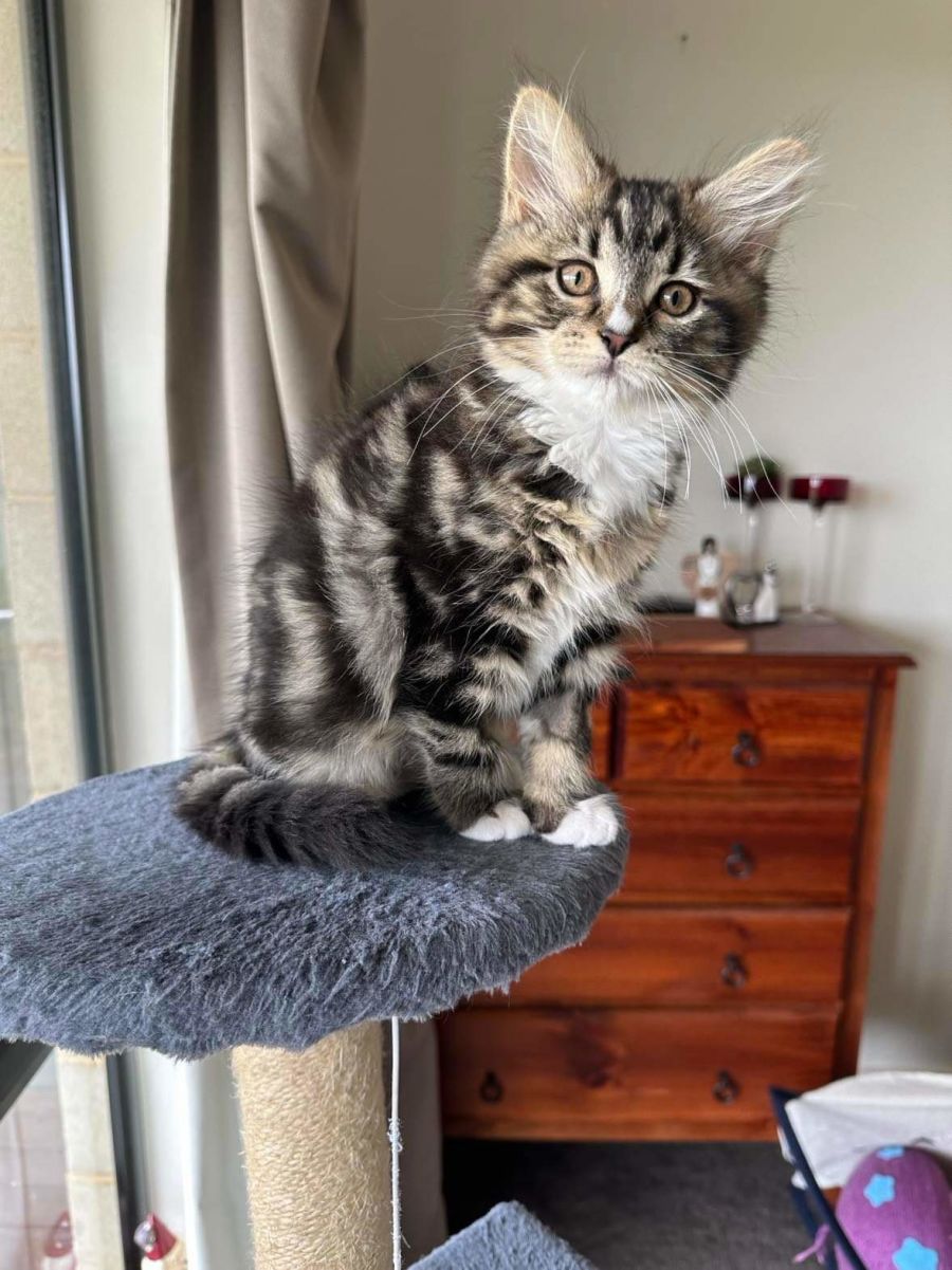 Peach is a sassy little girl & so adorably cute! She is good with being picked up, carried around & cuddled, but will give you a little grumble when she’s had enough. She will also come & sit with you for pats, but will tend to take herself off & sit on her own. Peach is a playful girl who has had plenty of foster siblings to play with, but as they have started to find forever homes - she has been quite happy with the reduced chaos of the house.
