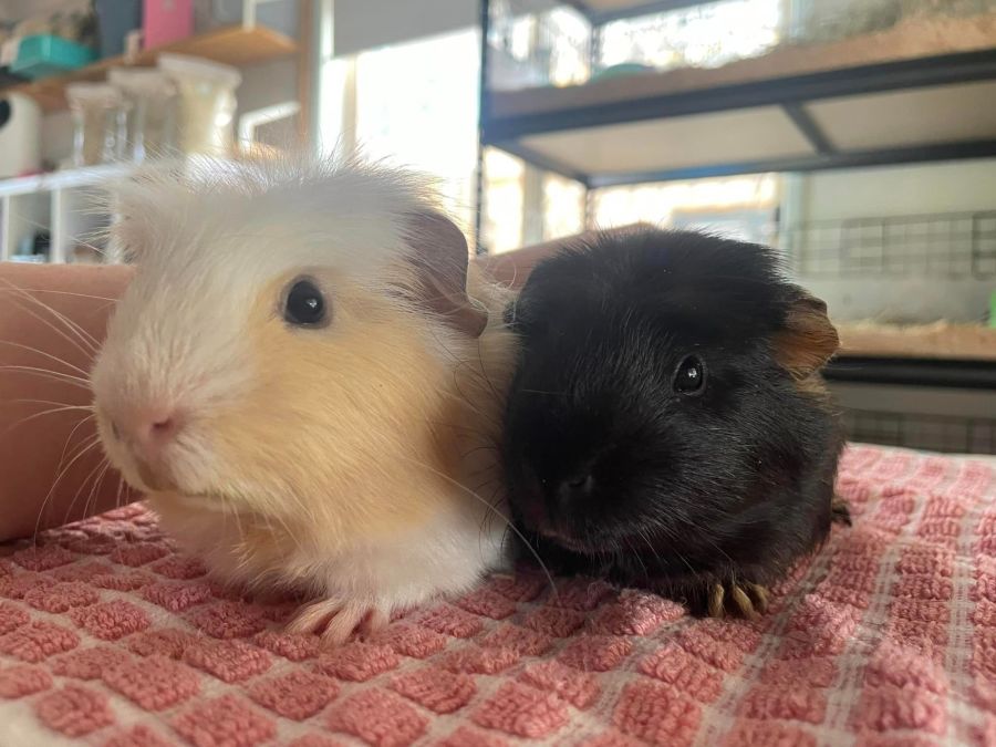 Background: Burt and BamBam are a super boisterous young pair of boys! They’ll love a cage with lots of enrichment (massive piles of hay are their favourite) and a family who understand that pigs take a little time to become fully fledged cuddle bugs.