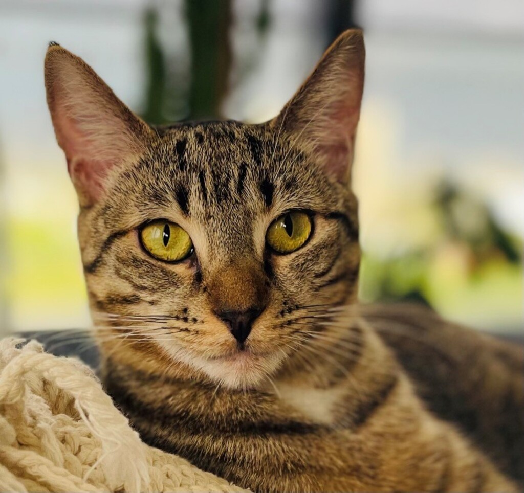Denna is a striking green eyed tabby. She is seeking a quiet and predictable adult home where she can live her best life. Denna may do well with a friendly feline for company. She loves playing with toys, and her favourite is her ping pong ball so I hope you like playing fetch. Overall, Denna is a sweet cat that will make a great furever companion, she'll just need some time to find her feet!