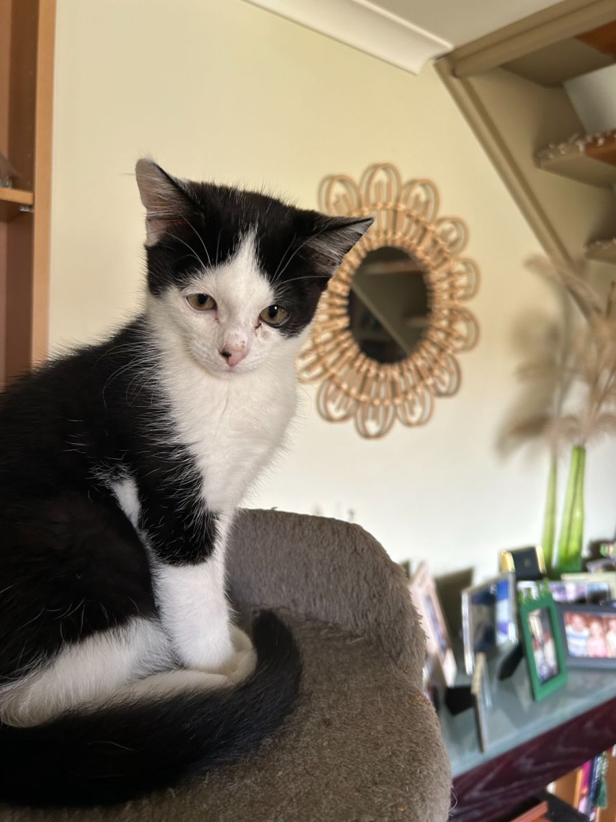 This black and white beauty is lovely happy lively chappy. He loves to play and hang out with his brother and also foster brother and sister.