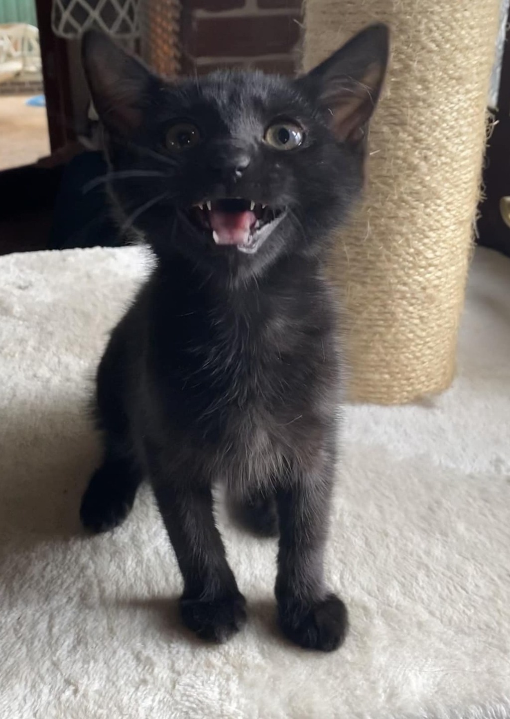 Pip is currently fostered with other cats, kittens and "cat friendly" dogs. She is happy to interact with all of them.