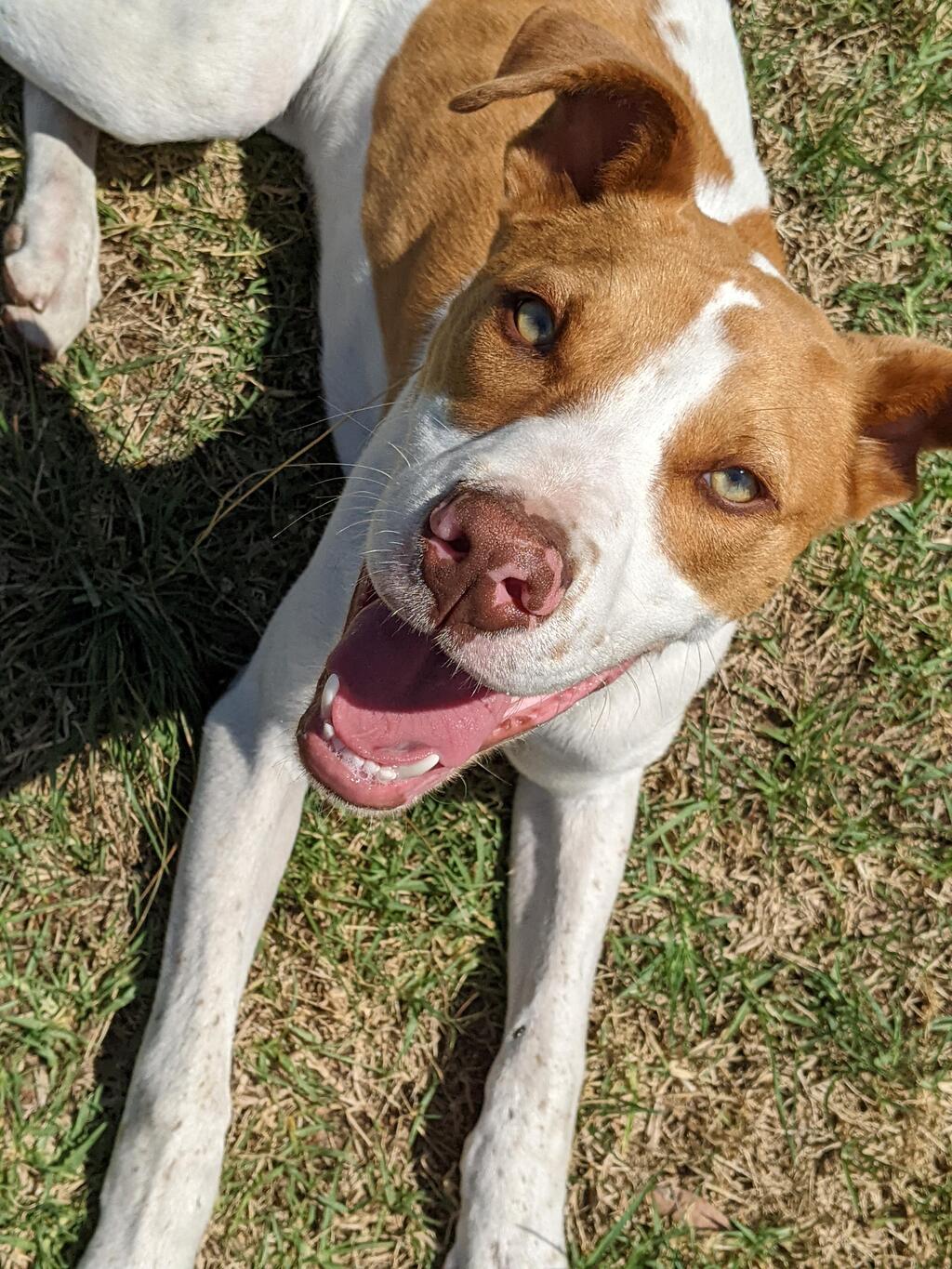 GERRY #2886 is now 8 months old and a gangly young Bull ArabX pup. He has green eyes and all he wants is to love everybody and to play. He has a great temperament and plays really well with kids even a 3 year old. He's big and bouncy but not boisterous. He would probably be okay with a cat but the resident cat gave him a slap when he tried to sniff her out of curiosity. He will benefit from dog obedience training and someone who is willing to put the time into working with him so that he develops into a good dog. He is in care with a kelpie and was very friendly with other dogs in the pound. He will need good food and plenty of it as he's growing and should be a large dog when fully grown. Gerry will be desexed, chipped, vaccinated, wormed and vet checked. Lifetime Registration is free.