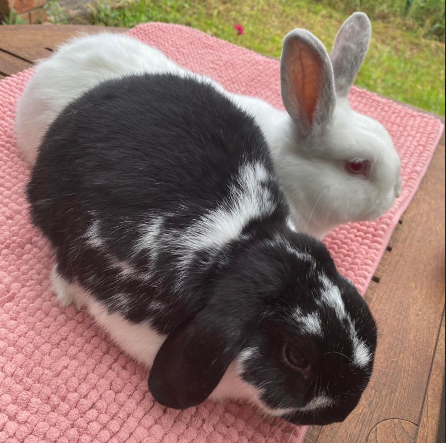 Jolly (lop) and Cinders (up-ears) are calm, relaxed, perfectly house-trained bunnies. They are so quiet at night time they could even sleep in your bedroom!