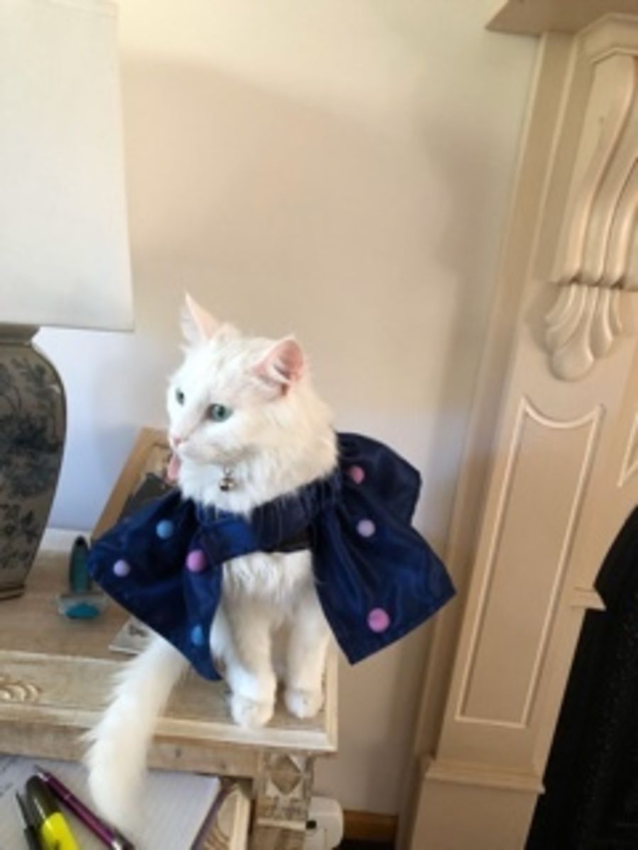 Bianca is a confident and smoochy cat who loves to strut around the house like she's in charge. She has the most gorgeous green eyes that will draw you in. The kids dressing her up for photos? That's all part of the fun for this mischievous girl!