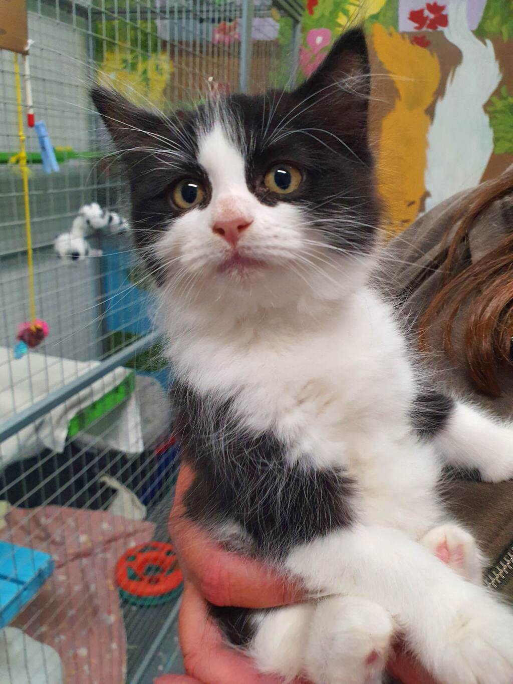 Ramen is a very sociable kitten who loves cuddles and being with people. She's been in a foster home with adult cats and a friendly small dog, so she could live with other pets as long as gradual introductions occur.