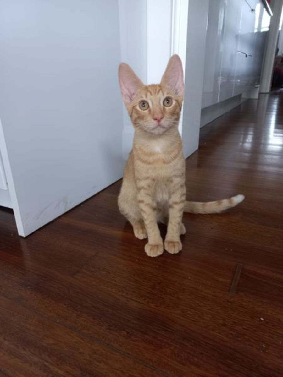 They were found abandoned in a very unsafe house that was completely over run with cats. They are both so pretty and look to have oriental in them (note their gorgeous ears and they are very finely built and small like an oriental Is). They love to play all day and explore everything as they are at that wonderful age.