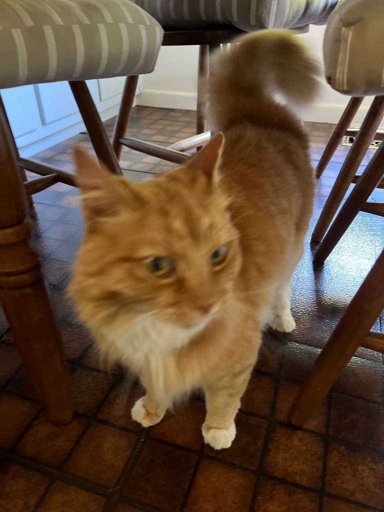 With his long dark ginger fur, Toby Red is a truly handsome boy. He will need regular brushing, as his fluff is super floofy!