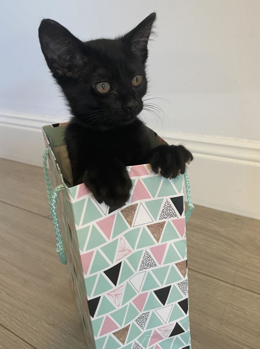 🐈⬛ Pound is a playful, brave, and energetic 12 week old kitten. This black domestic shorthair is a purrrfect addition to any family. Pound has hazel eyes and has a charcoal-coloured coat, that is super soft and lovely in a cuddle.