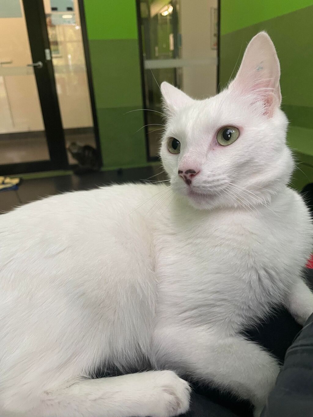 This is Frosty. Frosty is a very affectionate and snugly boy who loves nothing more than to spend time sitting on your lap. Do you want a cat who will give you endless head boops and purrs? If so, Frosty is the one for you! Frosty has light features that need to be protected from the sun, so he needs to live indoors.