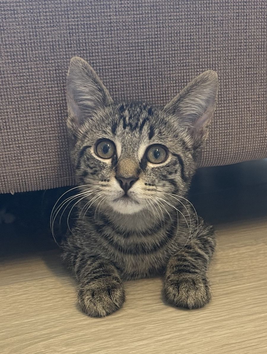 š¾ Stirling is a handsome boy of 12 weeks, who has a beautiful tabby coat, large ears and green-hazel eyes. He loves to be snuggled and enjoys lots of love and attention.