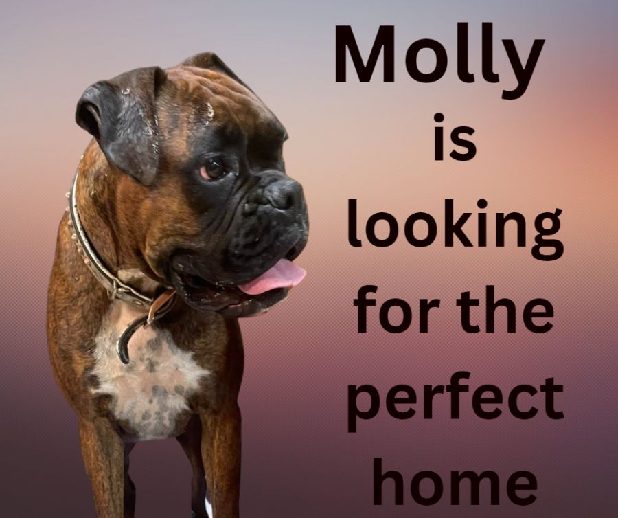 While she calms down quickly, Molly is still young and can become boisterous so a home with boisterous boxer experience is the way to go.