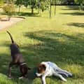- Secure fencing and a yard big enough for plays with his doggy mate.