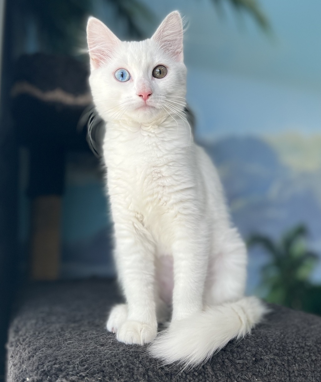 Bode would make a marvelous social media influencer with her signature look. She has the most stunning 2 different coloured eyes and long, snow white coat.
