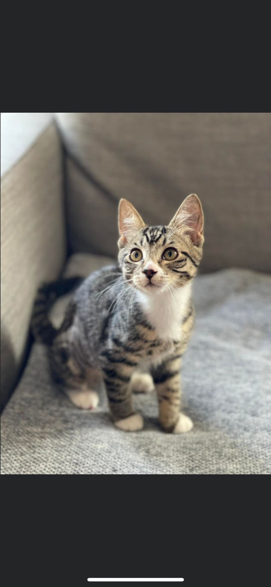 Lulu is a very loveable kitten who will walk around the house meowing for you. Once she is comfortable with you she will start purring as soon as you pick her up. she loves head kisses and patty paws like mad, she is honcho sweetest little girl.