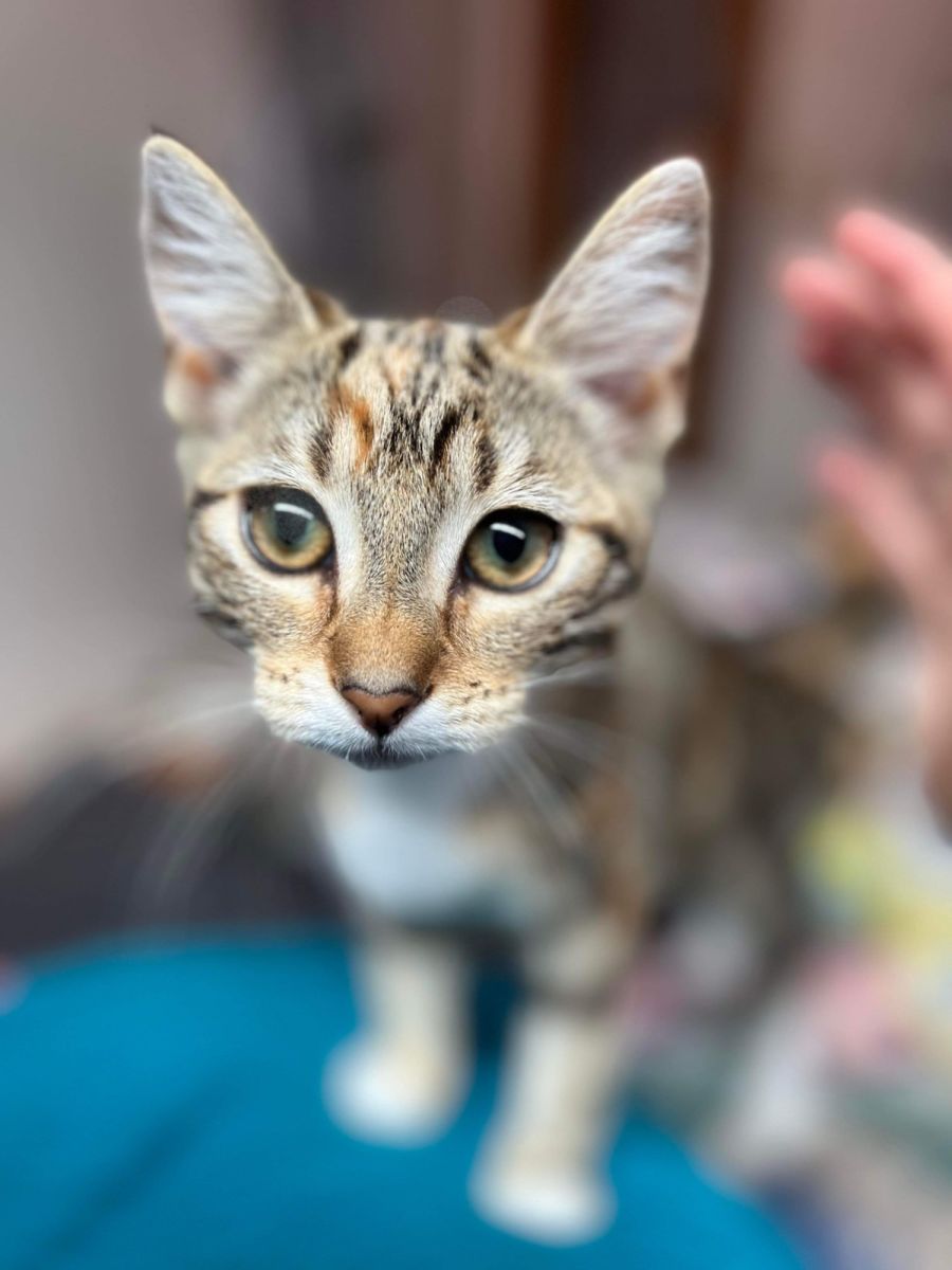 Santana is a clever and inquisitive cat, she is the first to figure new things out. Santana loves people and loves to play with her kitten siblings, but she is not a big fan of the resident cat at her foster home-though she does tolerate her.