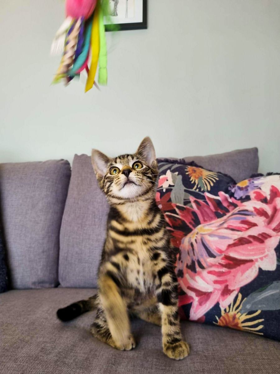 Toulouse is a ball of energy who is always eager to play. He has a big personality and is always curious to explore. Toulouse enjoys chasing his toys and playing with his sister. While he has a lot of energy, he is also very affectionate and will purr when patted. He is a stunning and affectionate kitten.