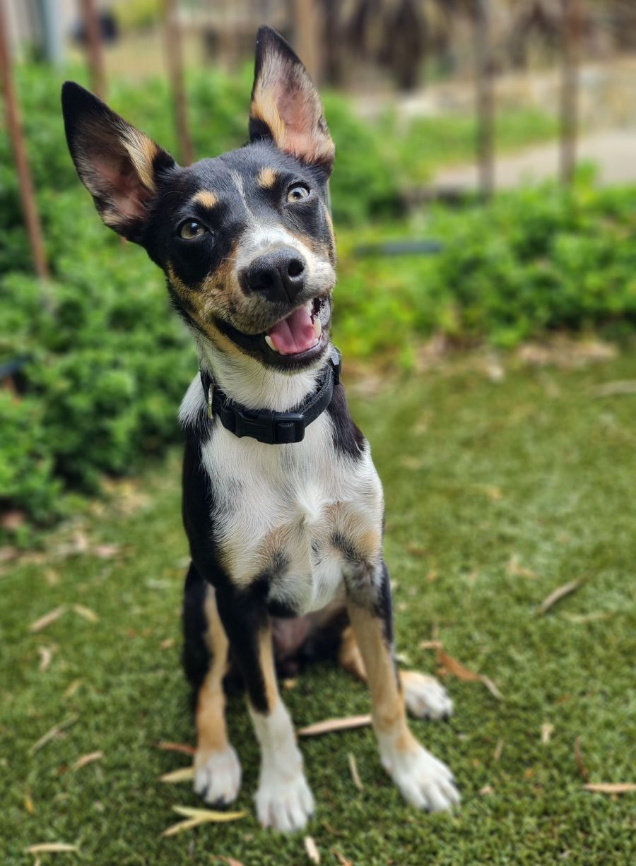 Lady is a teeny 6-month-old kelpie x koolie girl with a soft personality and not the slightest concept of personal space. This little lovebug enjoys nothing more than snuggling into the arms of her trusted people for cuddles.