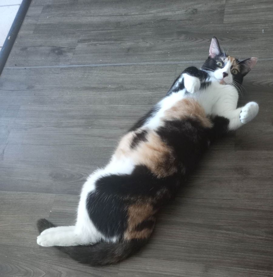 She likes to rub on your legs, meowing to get picked up. She loves eyeing the world from this height and usually purrs when you pick her up. She also likes to sit on your lap while watching tv.