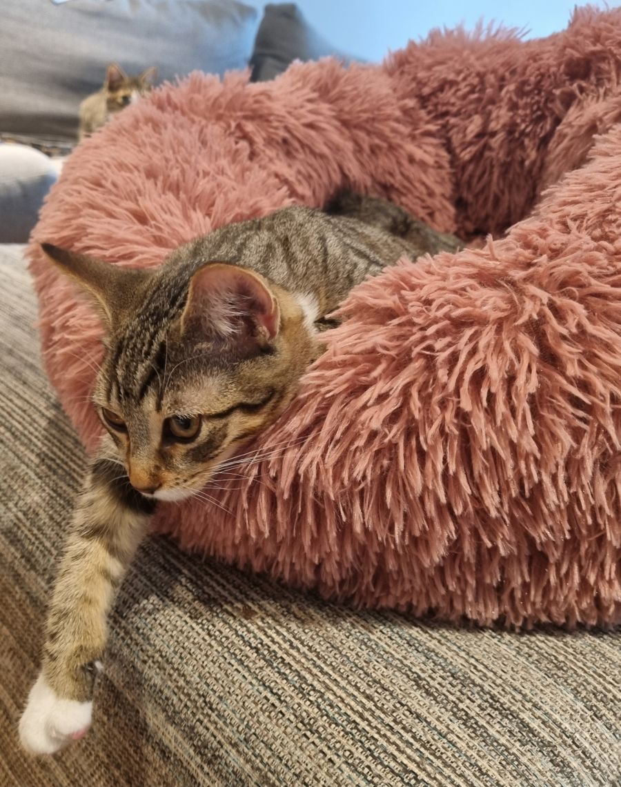 She has been raised with her mum, siblings, two other cats and a small dog.
