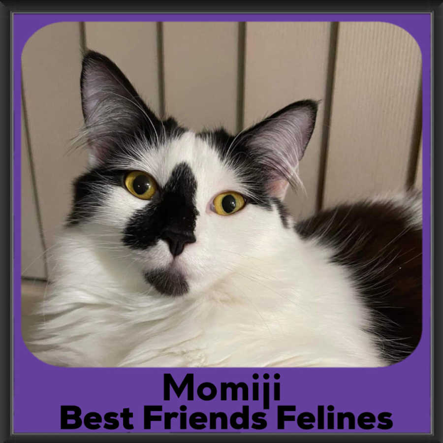 Momiji is one of a kind! She is a gentle giant with a super sweet nature and a sweet kitten like miaw. She is affectionate in her own way and, while she does not like being picked up or on your lap, she adores being patted!