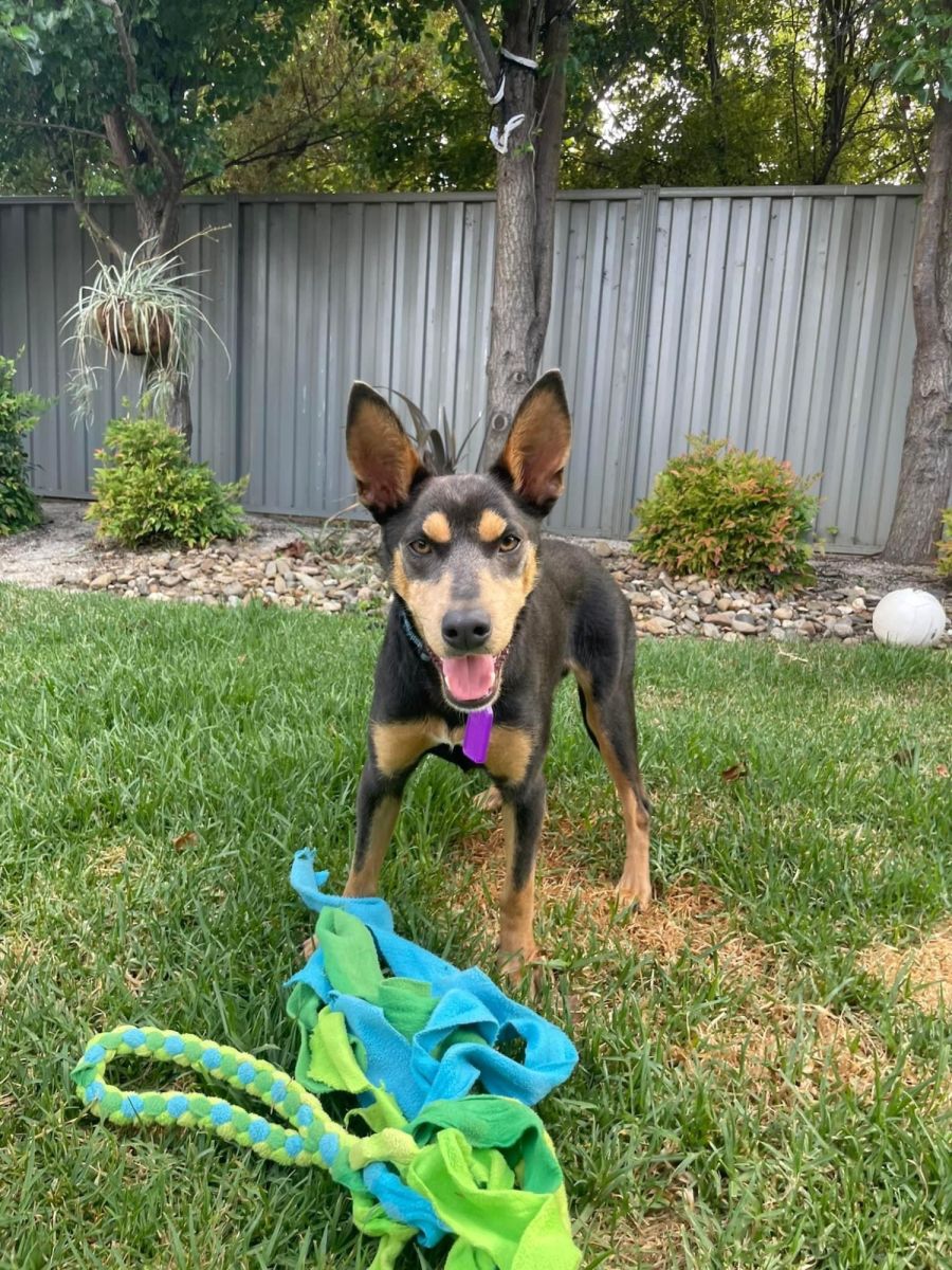 Roxy is a beautiful 1 year old blue and tan Kelpie girl. She is quite small, weighing only 10kg, but makes up for that with big personality! She is very energetic and quirky; she loves to pounce and bounce around but chasey is her most favourite.